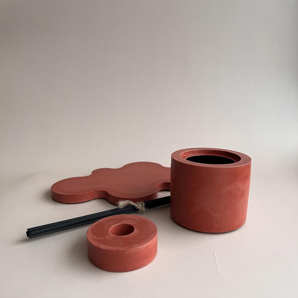 Полностью ручная работа.Диффузор и подставка выполнены из высокопрочного акрилового гипса, приятные на ощупь и прочные как бетон. Жидкость для заполнения диффузора представлена в семи премиальных ароматах для дома, наполняющих пространство неповторимым ароматом.Такой набор отлично подойдет для подарка. Представлены в эксклюзивном кирпично-красном цвете.Просим указать при заказе номер выбранного аромата:1.BLACKBERRY BAY – яркий и свежий, бутоны черной смородины и листья ежевики делают аромат таким насыщенным и свежим с ярким акцентом лаврового листа, а древесные оттенки кедра придают базовым нотам приятную глубину. Ноты аромата: ежевика, лавр, грейпфрут, кедр и ветивер.2.WOOD SAGE & SEA SALT – аромат является запахом радости и свободы, для тех, кто хочет в черте города ощутить всю прелесть морского побережья. Аромат построен вокруг аккордов семя