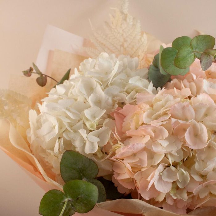 Гортензия – 3 шт. Эвкалипт – 1 шт. лист папоротника – 2 шт.