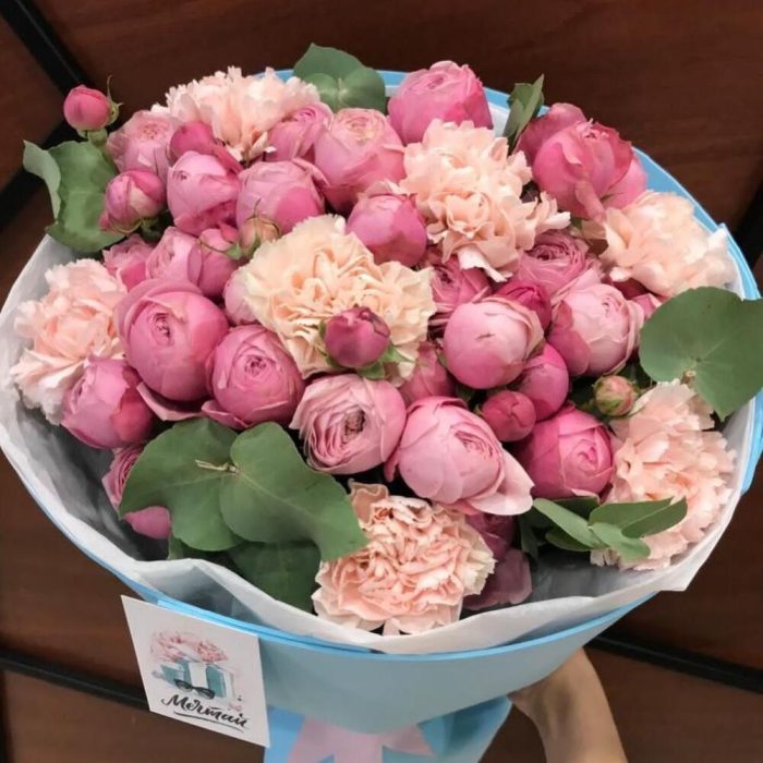 Гвоздики, Лизиантусы, Розы, Тюльпаны
