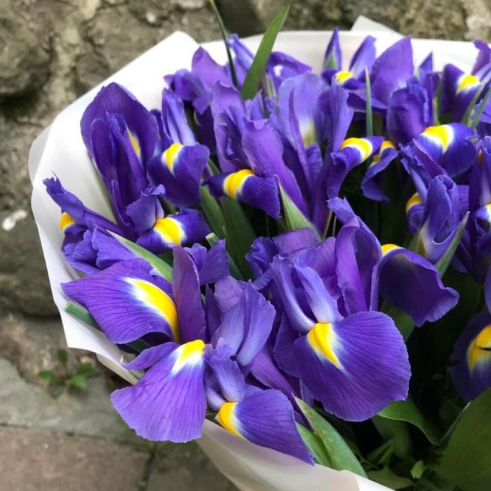 Лента атласная – 1 шт.Фисташка – 5 шт.Упаковка дизайнерская – 2 шт.Ирис Blue Magic – 51 шт.