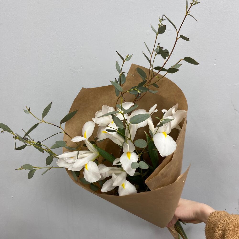 Ирис – 5 шт.Эвкалипт – 2 шт.Упаковка крафт – 1 шт.