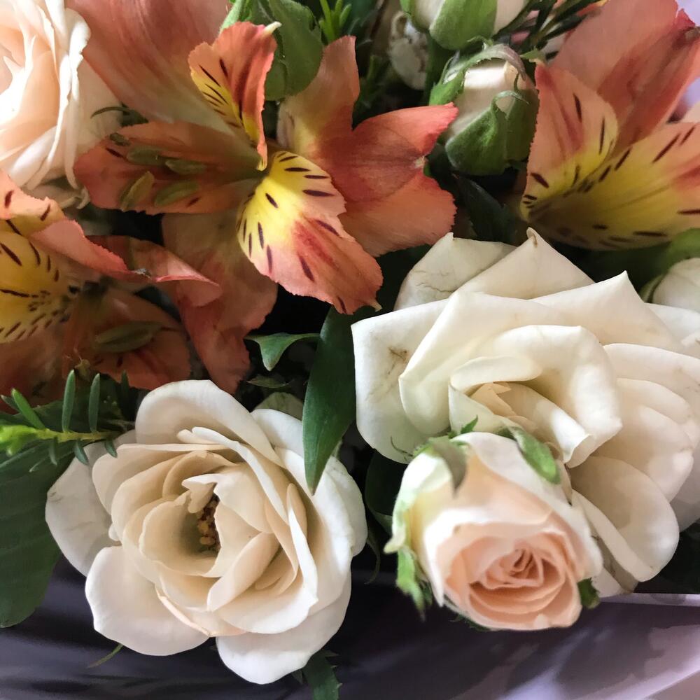 Альстромерия – 4 шт.Роза кустовая – 3 шт.Ваксфлауэр – 1 шт.