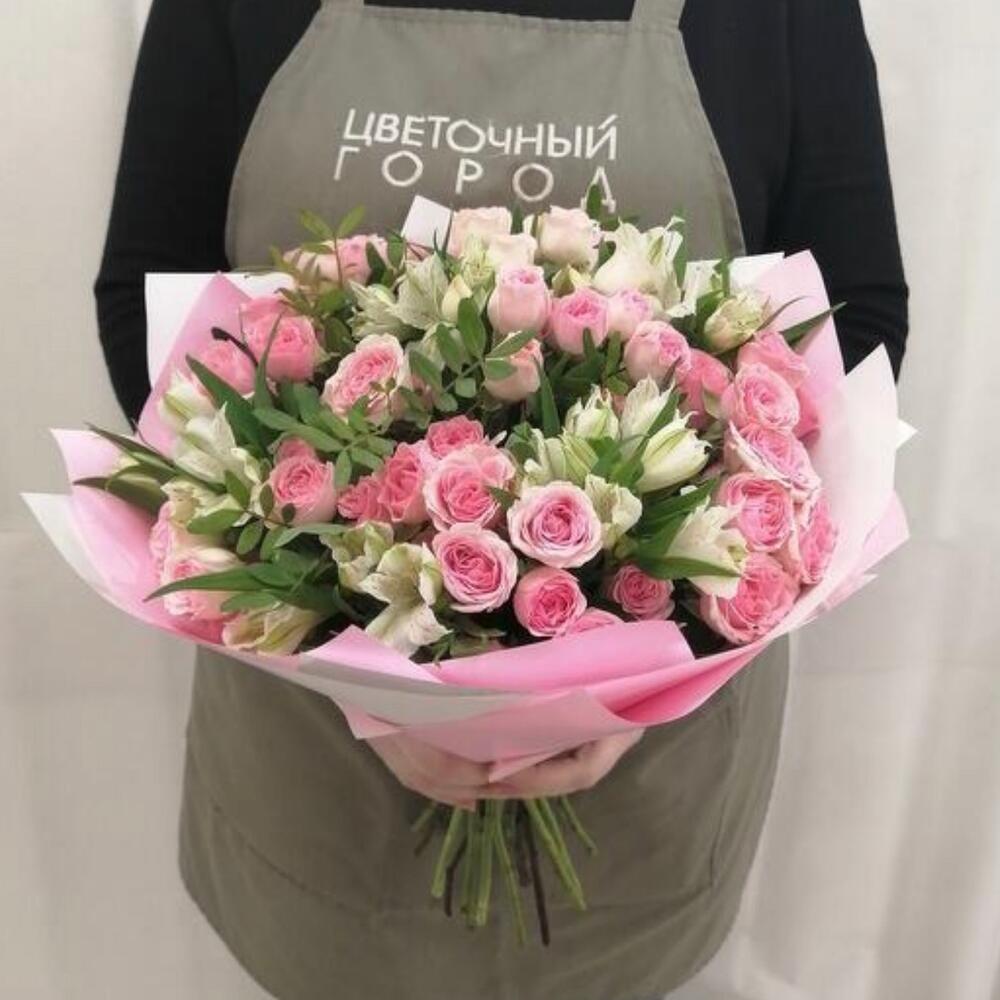 Гвоздики, Кустовые розы, Лизиантусы, Пионовидные розы, Розы