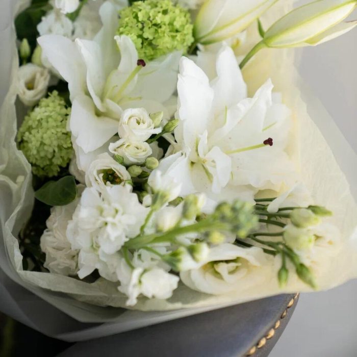 Белоснежный букет с лилией и маттиолой