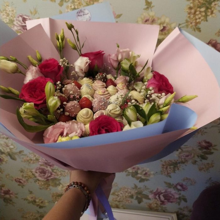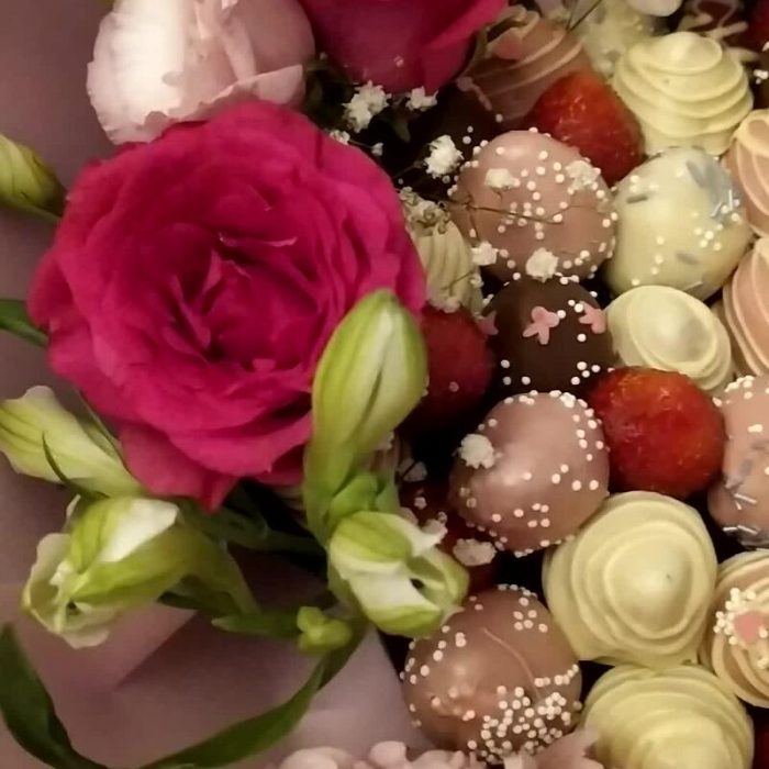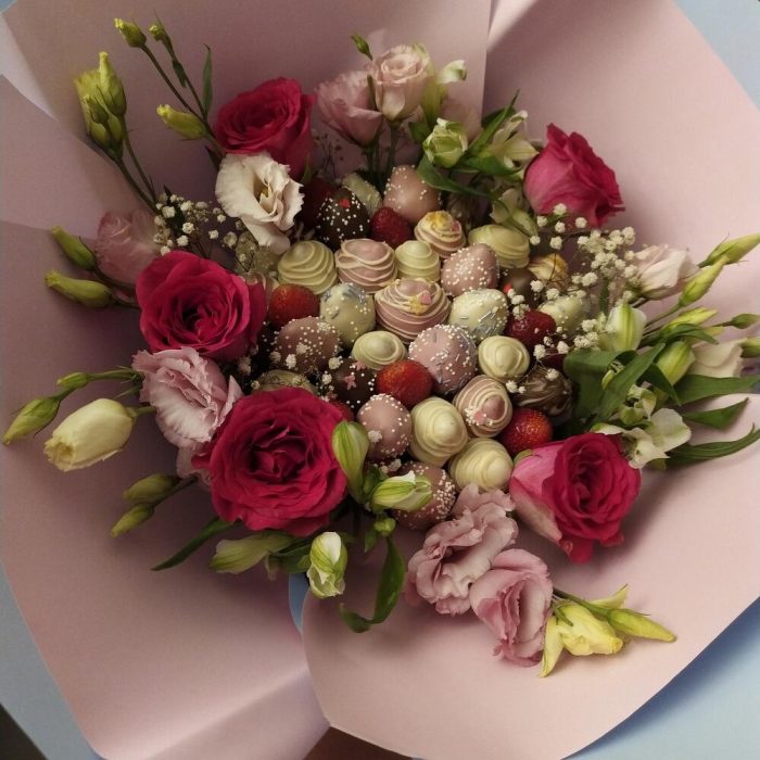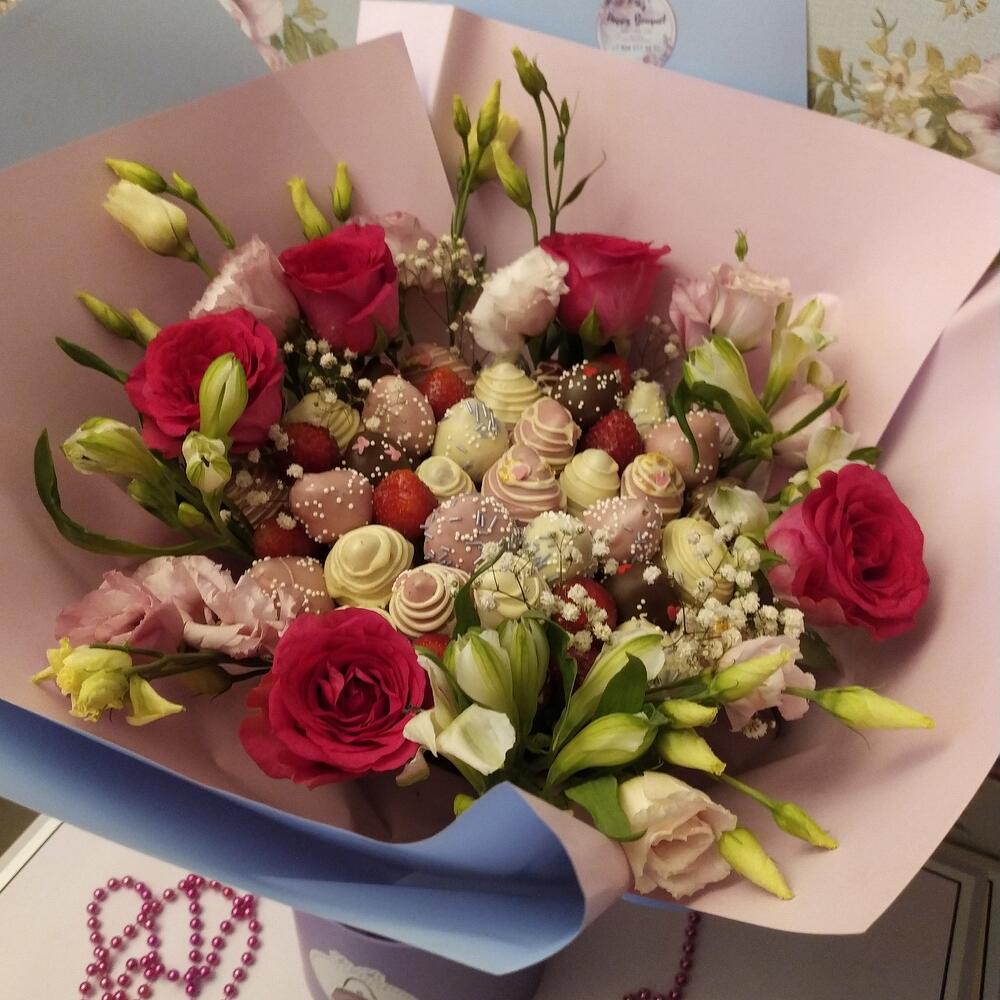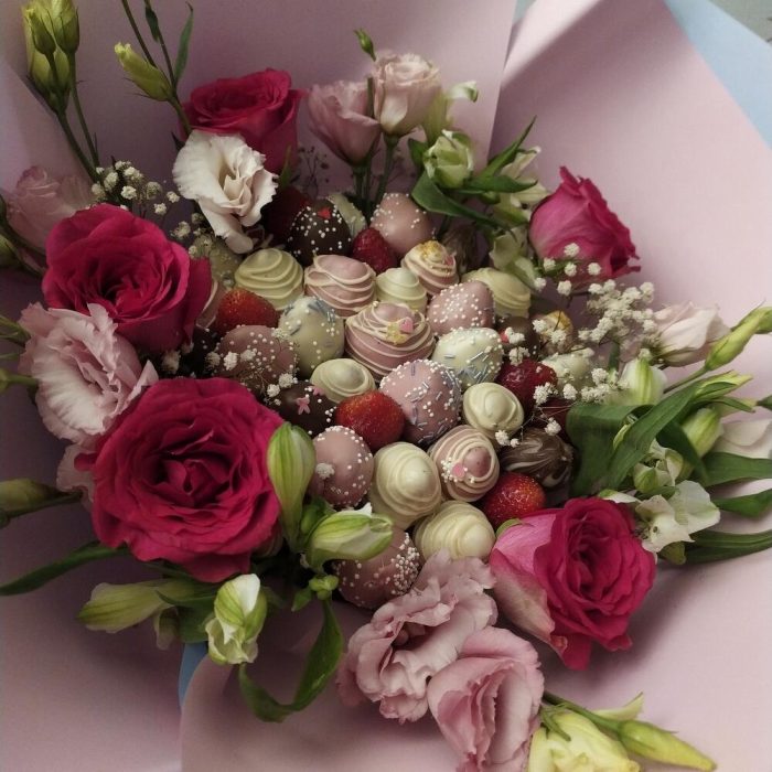 Букет клубника в шоколаде с цветами ” Love”
