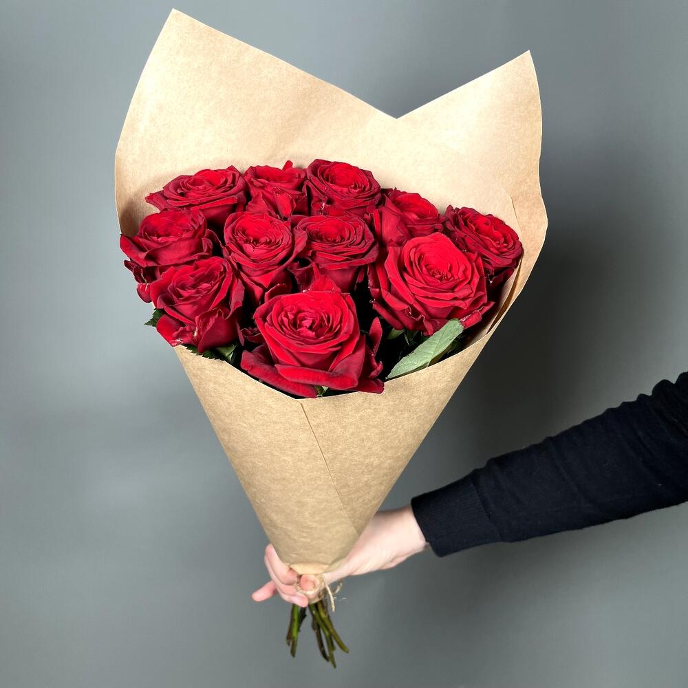Крафт упаковка – 1 шт.Роза красная россия – 11 шт.