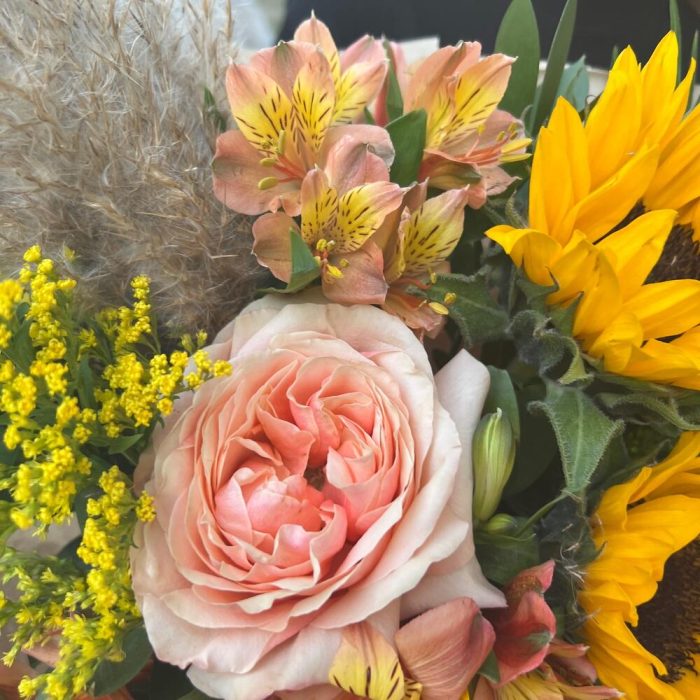Категорий: Альстромерии, Пионовидные розы, Подсолнухи, Розы, Ромашки, Сухоцвет