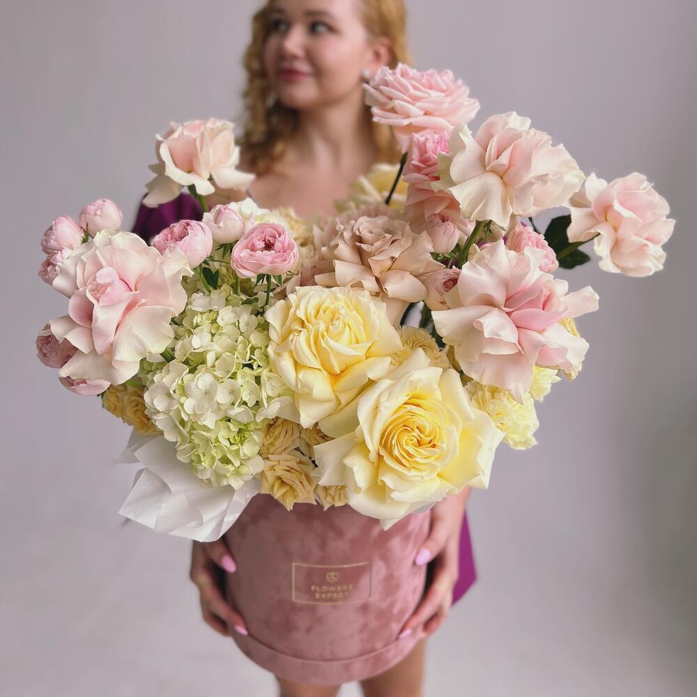 “В твоих глазах”: нежная шляпная коробка с французскими розами
