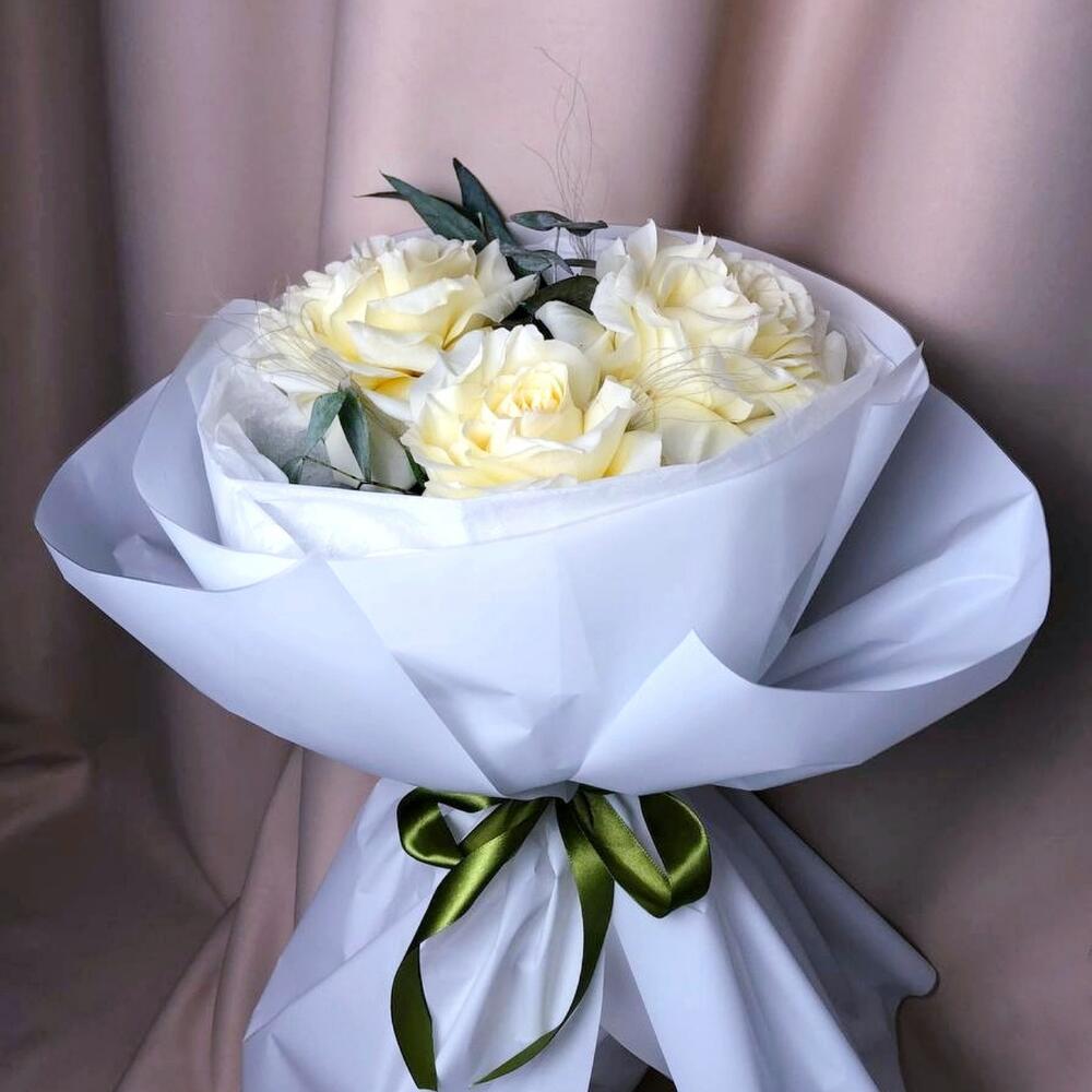 Белая роза крупная французская с эвкалиптом, букет S