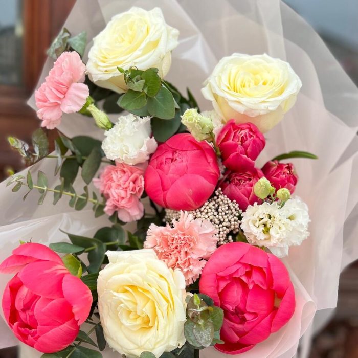 Категорий: Гвоздики, Лизиантусы, Пионовидные розы, Розы, Тюльпаны