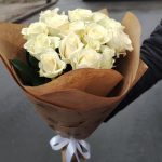 роза украинская белая – 15 шт. оформление крафт бумага – 1 шт.