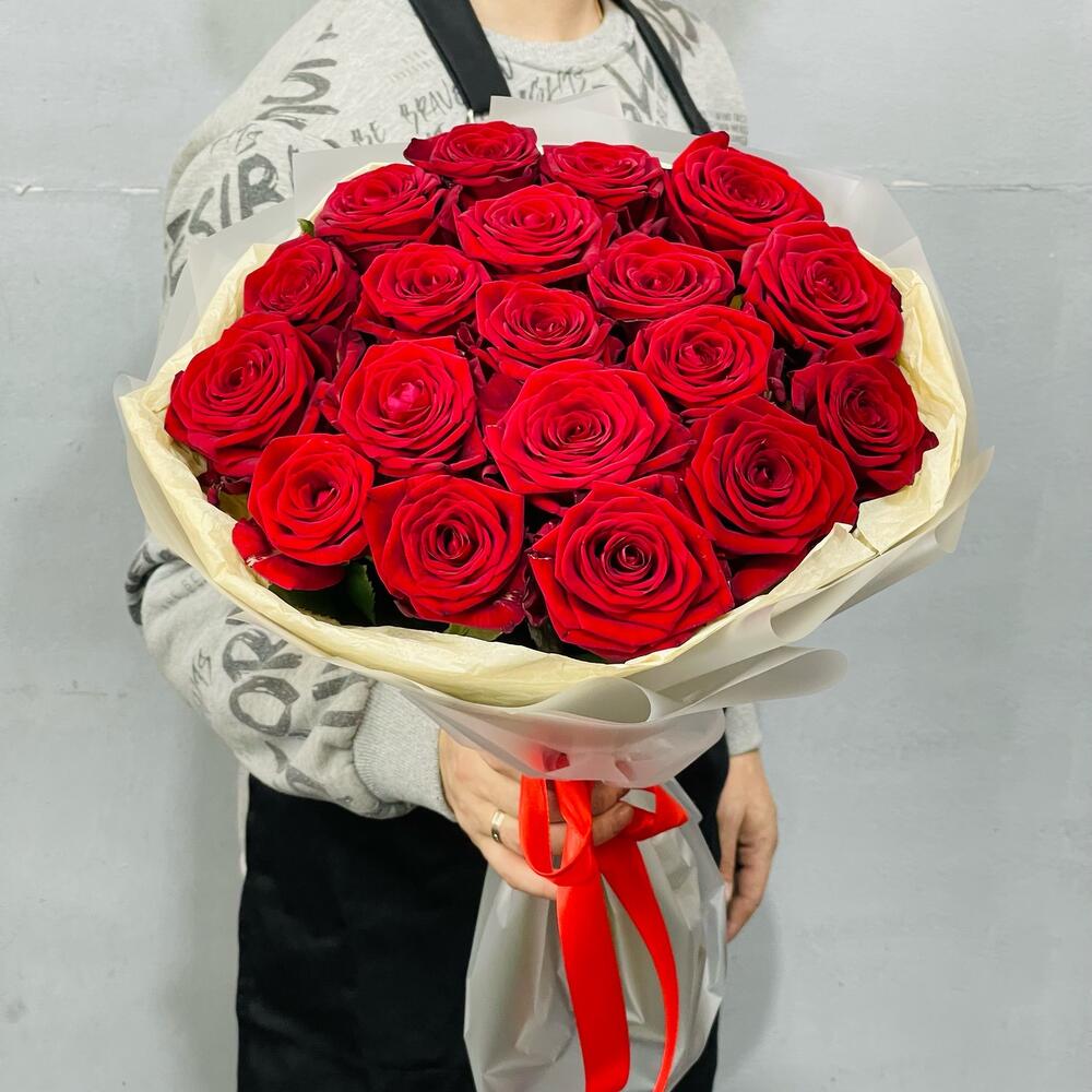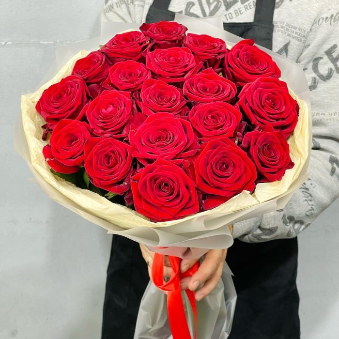 Лента атласная – 1 шт.Роза 70 см – 19 шт.Упаковка дизайнерская – 4 шт.