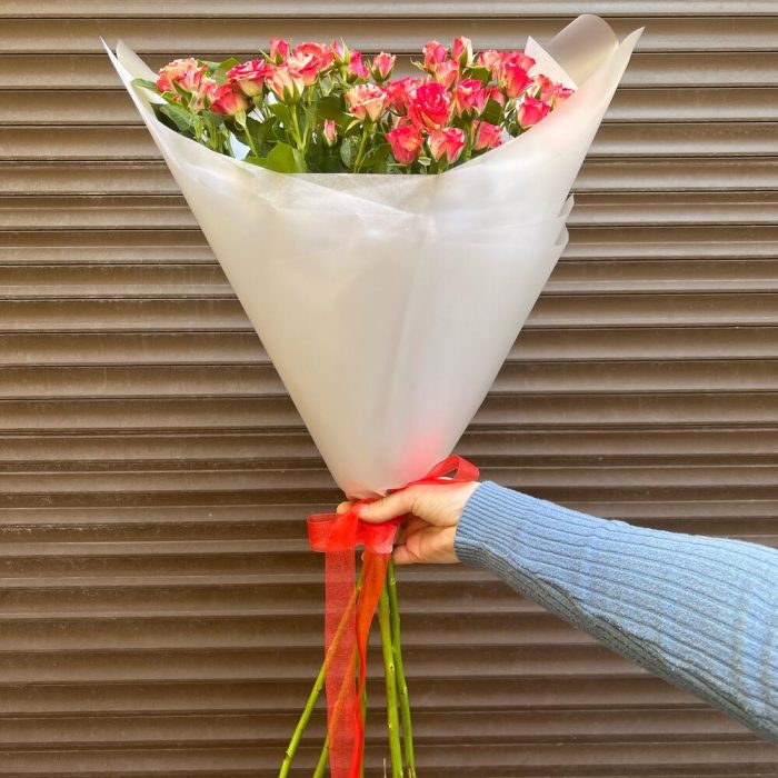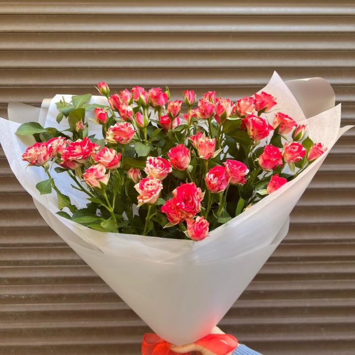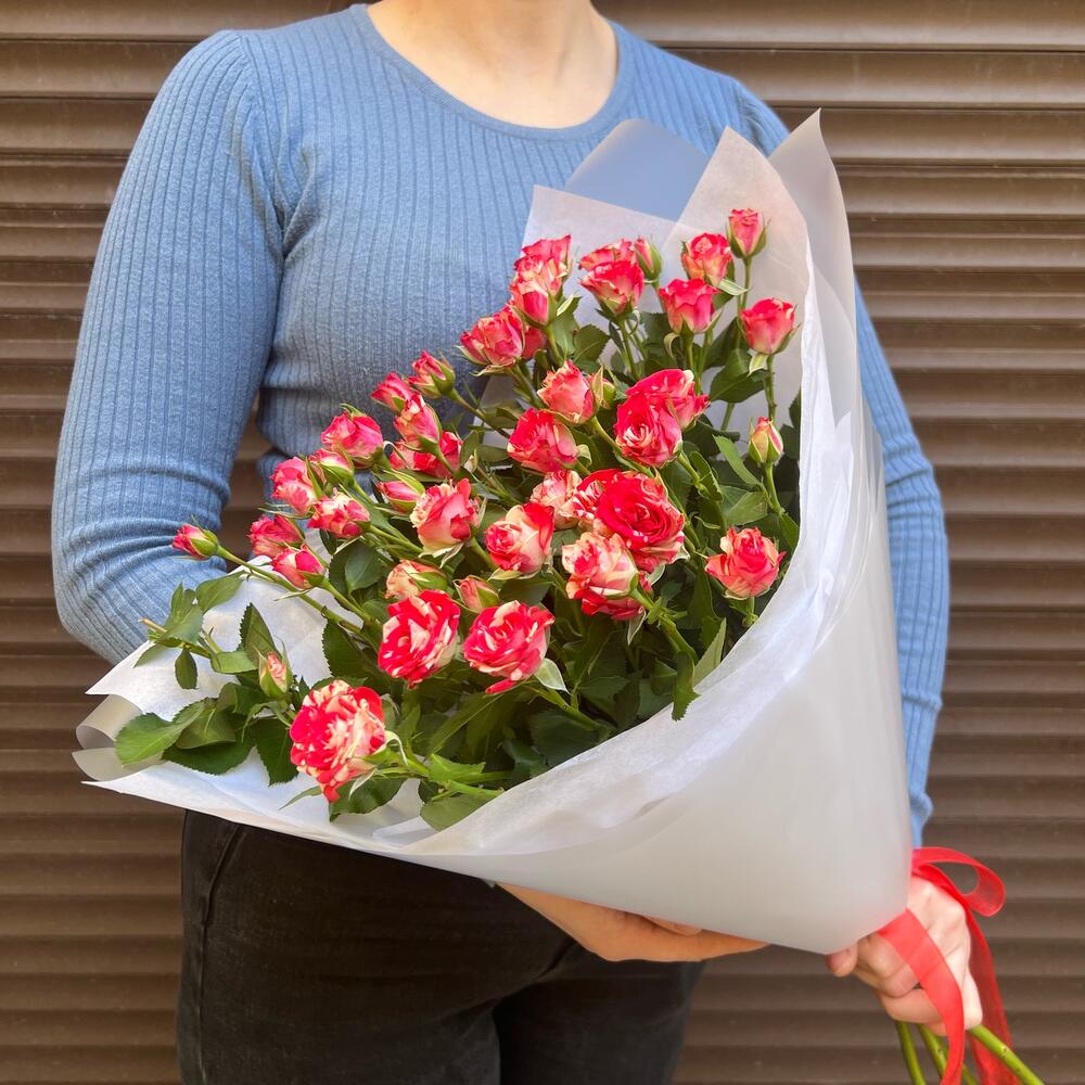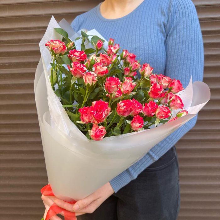 Тишью – 2 шт.Пленка матовая – 2 шт.роза фаервокс кустовая – 5 шт.