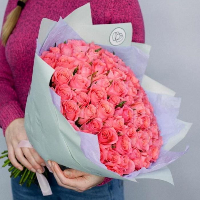 Букет из 75 коралловых роз (Кения) 40 см