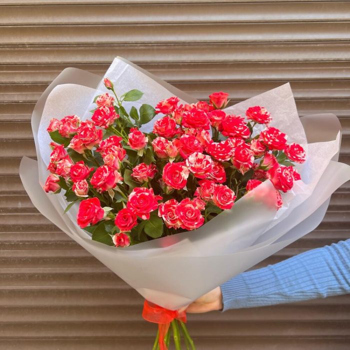 Букет из 9 ярких кустовых роз (моно 053)