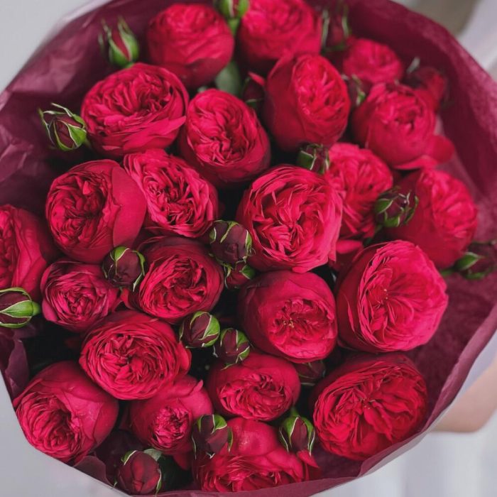 Букет из красных пионовидных роз