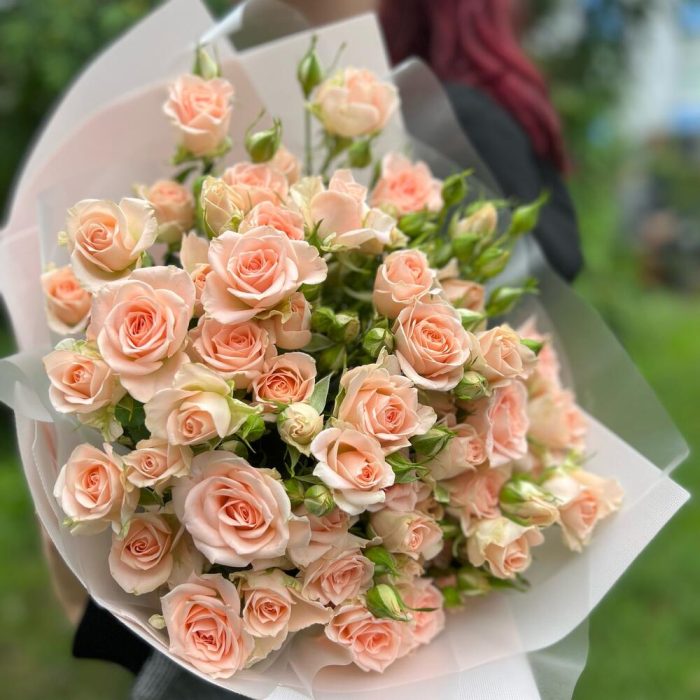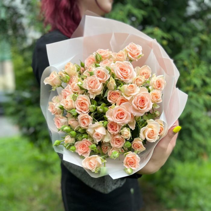 Роза кустовая – 11 шт.Пленка матовая – 2 шт.структурированны фаомиран – 2 шт.