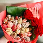 Букет с клубникой и аспидистрой
