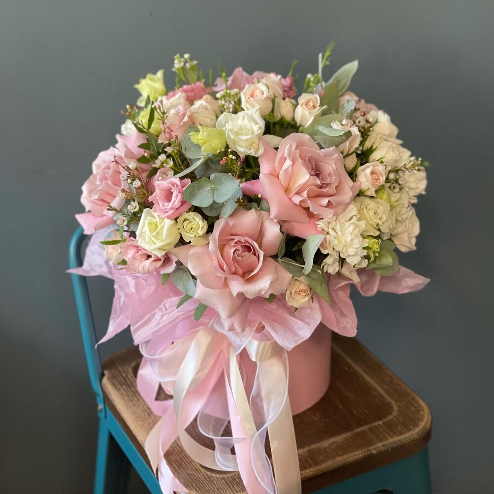 “В твоих глазах”: нежная шляпная коробка с французскими розами