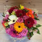 Альстромерии, Гвоздики, Кустовые розы, Лизиантусы, Розы, Хризантемы