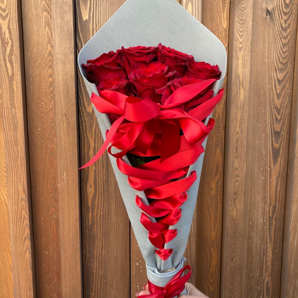 Роза – 11 шт.Упаковка дизайнерская – 1 шт.Лента атласная – 4 шт.