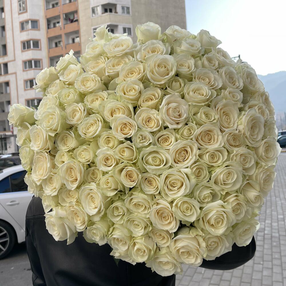 Монобукет 101 белая роза