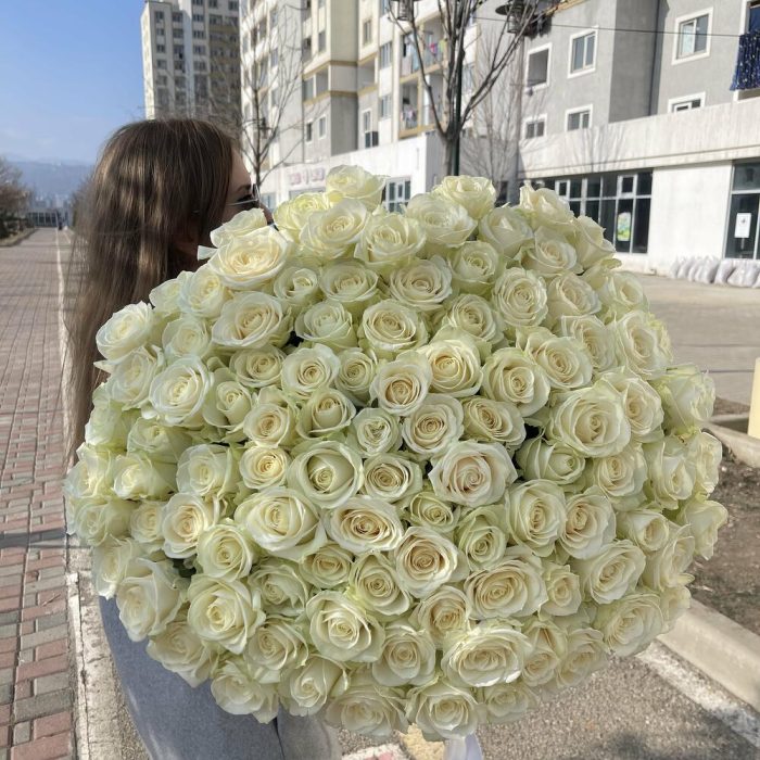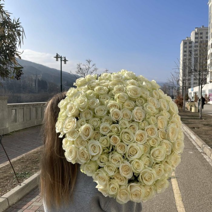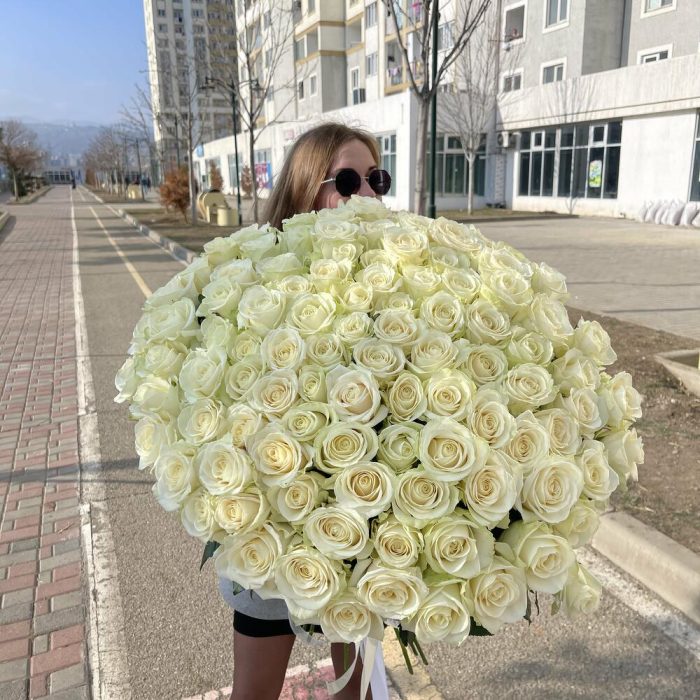 Метки: 101 роза, Белые розы, от 5000 руб, Роза 70 см