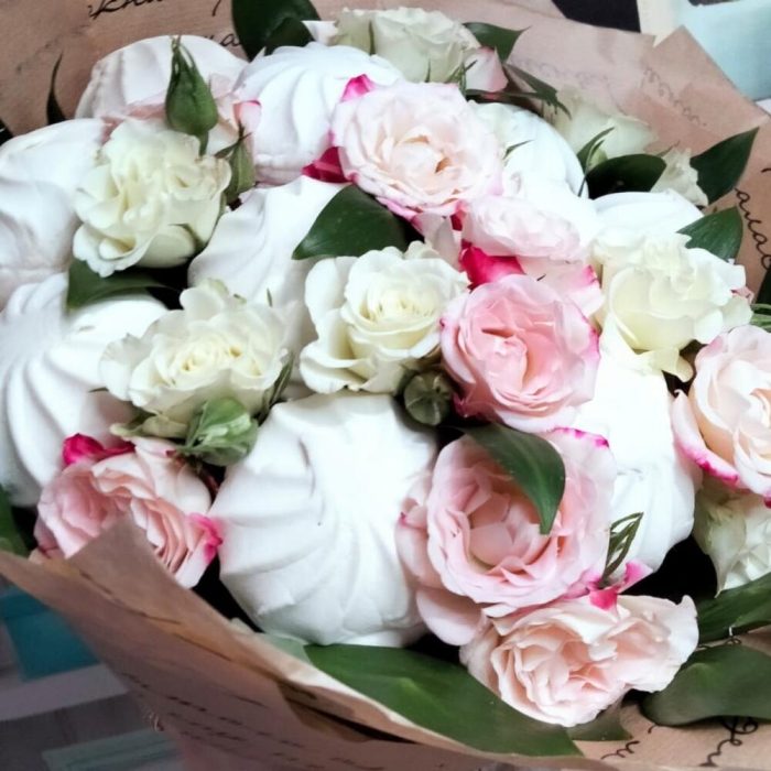 Зефир – 12 шт.Роза кустовая – 2 шт.зелень натуральная – 1 шт.