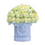 “Атлас☁️” – цветочная композиция с зефиром в деревянном ящике