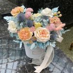 “Атлас☁️” – цветочная композиция с зефиром в деревянном ящике