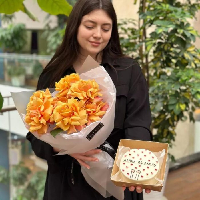 Чудесный набор из голландских роз и чудесного бенто тортика! Порадуйте своих близких!