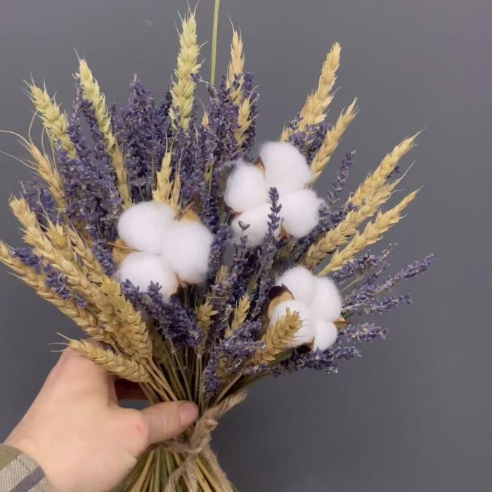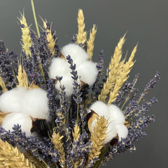 Хлопок натуральный – 3 шт.бечевка натуральная – 1 шт.лаванда сухоцвет банч – 1 шт.пшеница (сухоцвет) банч – 1 шт.